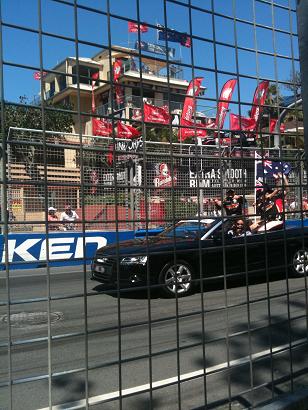 まずはレーサー達のパレード。ここは通常ゴールドコーストの車道ですが、この日は全部封鎖してカーレース用に