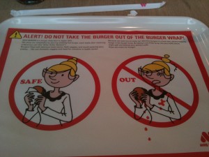 こんなのが敷いてあったんだけど、隣のオーストラリア人カップルが、フンフン、なるほど!ってかんじで実践、感動してました。これってソースの多いモスの独自の提案だったの?意外なところだなと思いましたよ。。