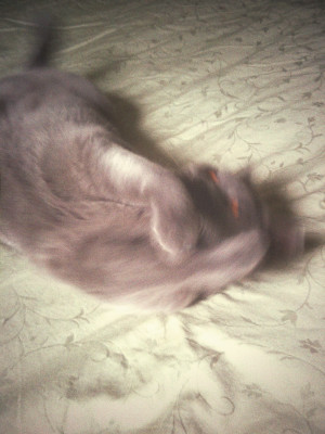 それでここ最近のハンタの流行はネズミのおもちゃで私、もしくはジャスティンが投げてそれを自分が口でくわえて持って来てまた私らが投げるというゲームでした。